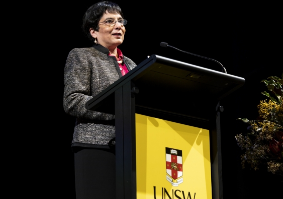 Dr Marlene Kanga AO addresses the audience after being presented with the Ada Lovelace Medal at the recent UNSW Women in Engineering Awards. Photo: UNSW/Ken Leanfore.