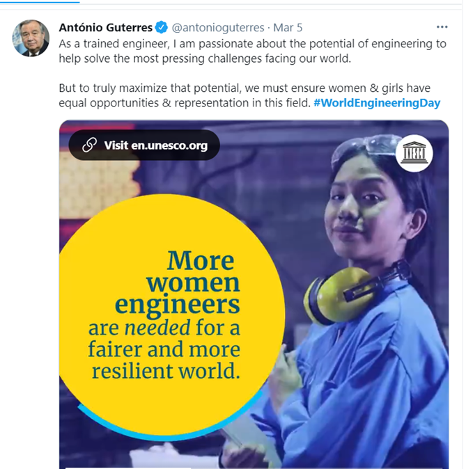 Tweet from UN Secretary General to celebrate World Engineering Day