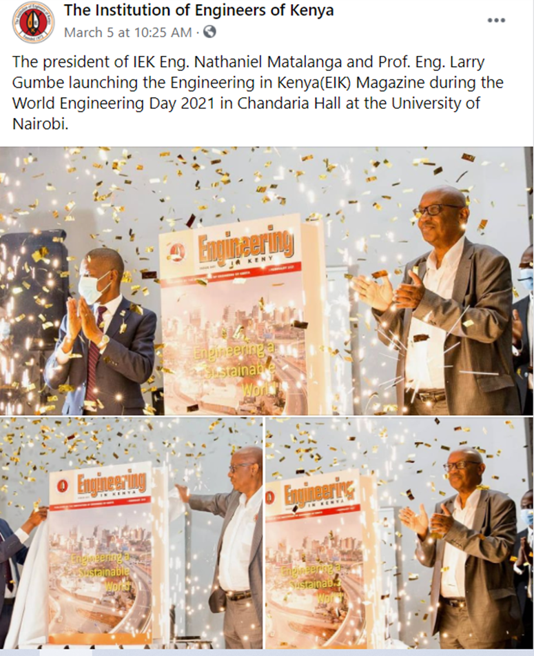 Launch of Engineering in Kenya Magazine by Institution of Engineers Kenya on the World Engineering Day