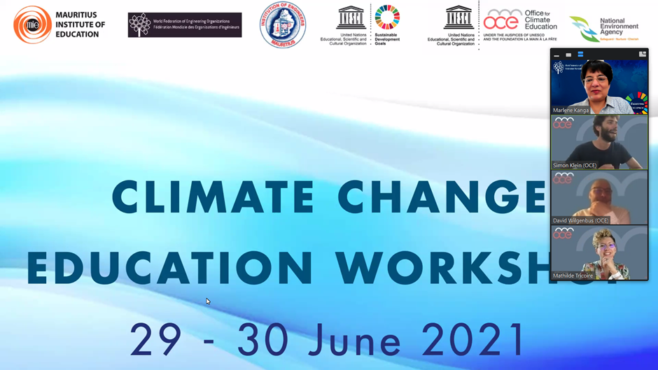 UNESCO, the World Federation of Engineering Organisations (WFEO), the Office of Climate Change Education (OCE), the National Environment Agency Singapore (NEA), the Mauritius Institute of Education (MIE) and the Institution of Engineers Mauritius came together in a join project for teacher training for world class climate change education for primary and secondary schools in Mauritius.