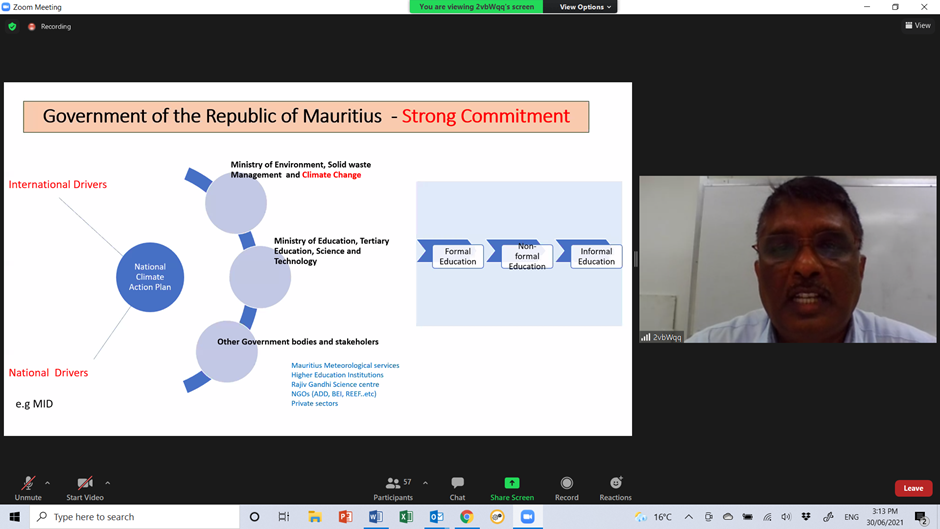 Associate Prof. Dr Ravee Bholah, Associate Professor Head, Science Education Department Mauritius Institute of Education presents on the strong commitment of the Government of Mauritius to addressing climate Change