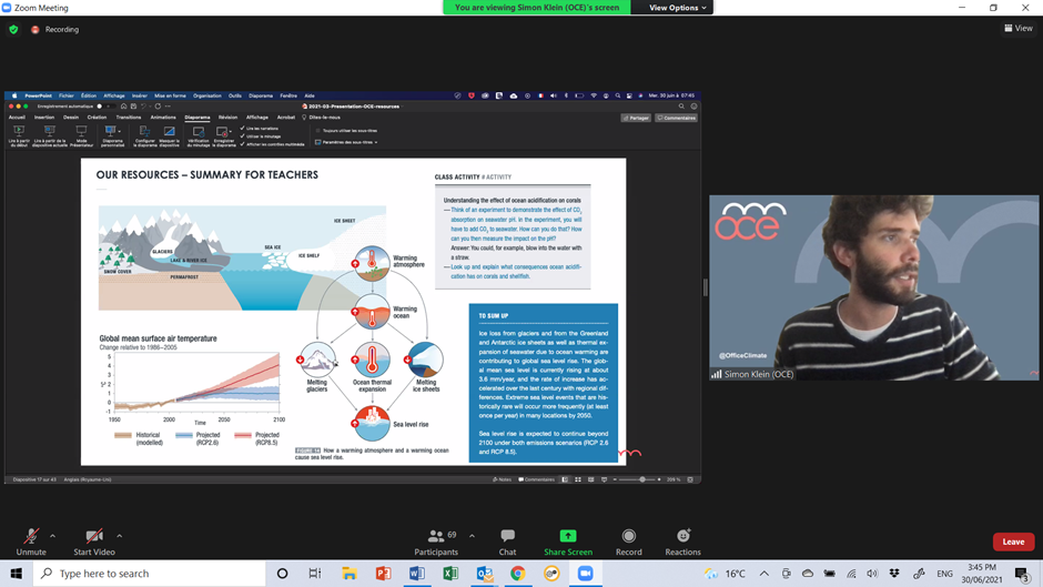 - A two half-day training workshop on 29-30 June 2021, delivered virtually by OCE (Office for Climate Education) educators based in Paris. Teachers from Rodrigues attended virtually.
