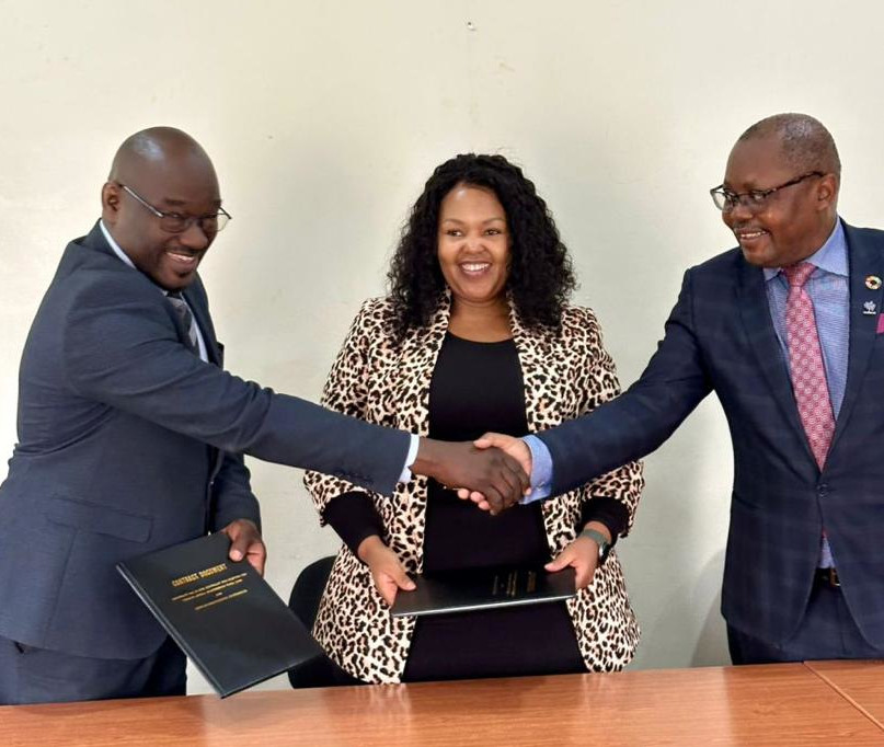 From left to right: the UIPE President Eng. Bosco Lepi, the FAEO President Eng. Refilwe Buthelezi and the AEW Steering Committee Chair Dr. Eng. Martin Manuhwa after signing the AEW Hosting Contract.
