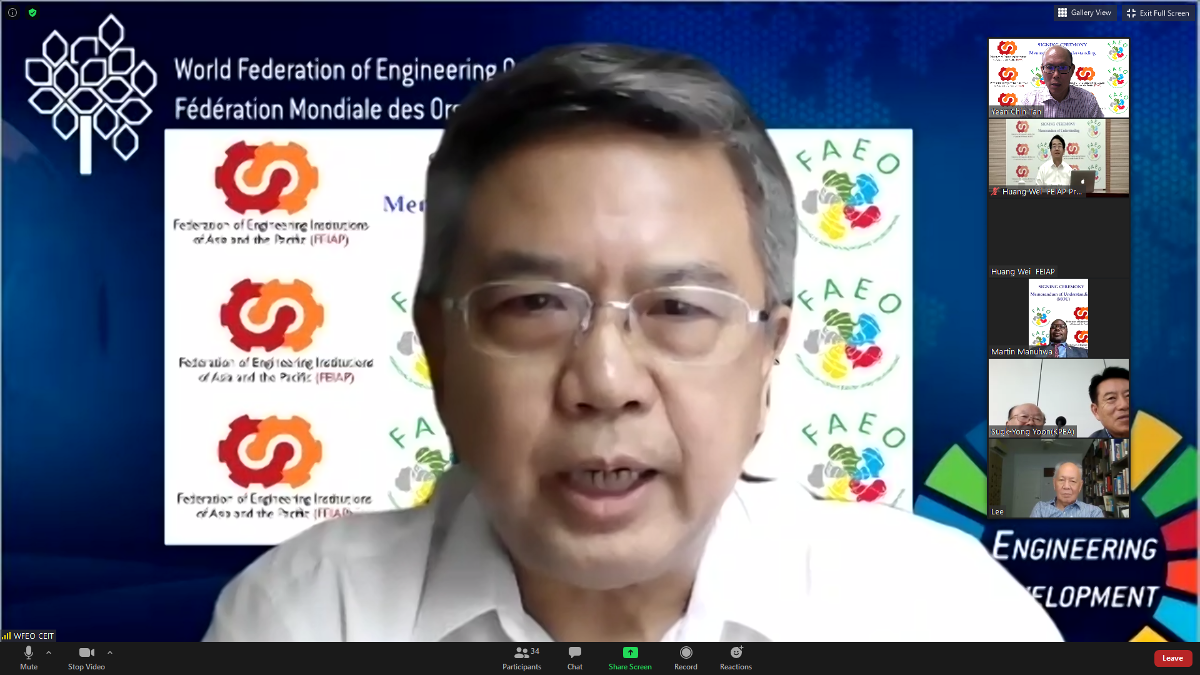 On July 2nd 2020, WFEO President Gong Ke together with Executive Vice President Mustafa Shehu attended the online Memorandum of Understanding Signing Ceremony between the Federation of Engineering Institutions in Asia and the Pacific (FEIAP) and the Federation of African Engineering Organizations (FAEO).
