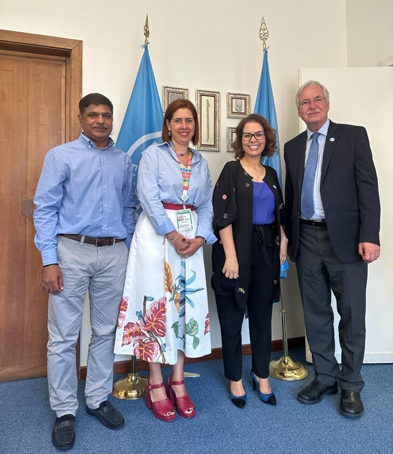 From left to right: Meeting with Dr. Selvaraju Ramasamy, Senior Officer, Office of Innovation, Dr. Ania Lopez, National Member Representative for Italy of WFEO Executive Council, Dr. Ismahane Elouafi, Chief Scientific FAO and Dr. Daniel Gustafson, Special Representative of the Director General of FAO.