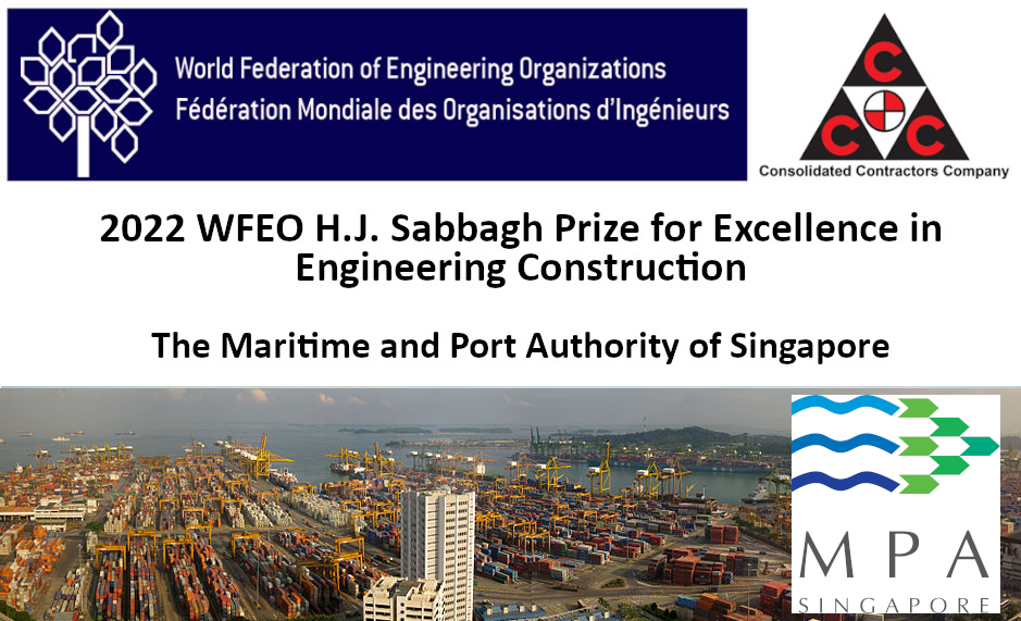 WFEO’s Executive Board and Council members send their sincere congratulations to the Maritime and Port Authority (MPA) of Singapore for being awarded the 2022 WFEO-CCC H.J. Sabbagh Prize.