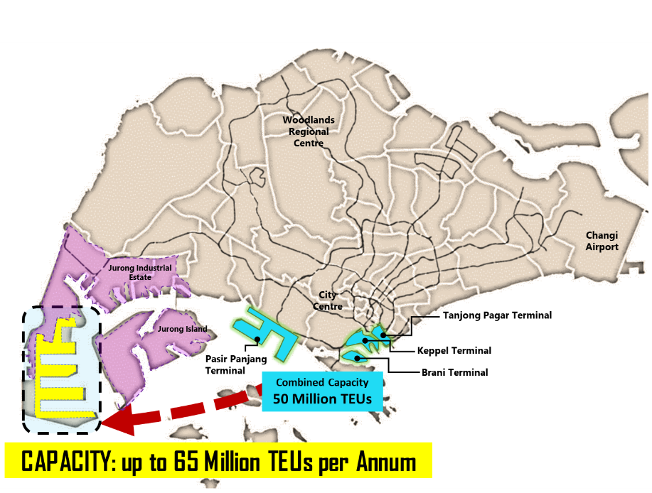 The completion of the Tuas Port Phase 1 project marked a significant milestone in the Tuas Next Generation Port development, which would be the largest fully automated containerised port in the world, capable of handling 65 million twenty-foot equivalent units (TEUs).