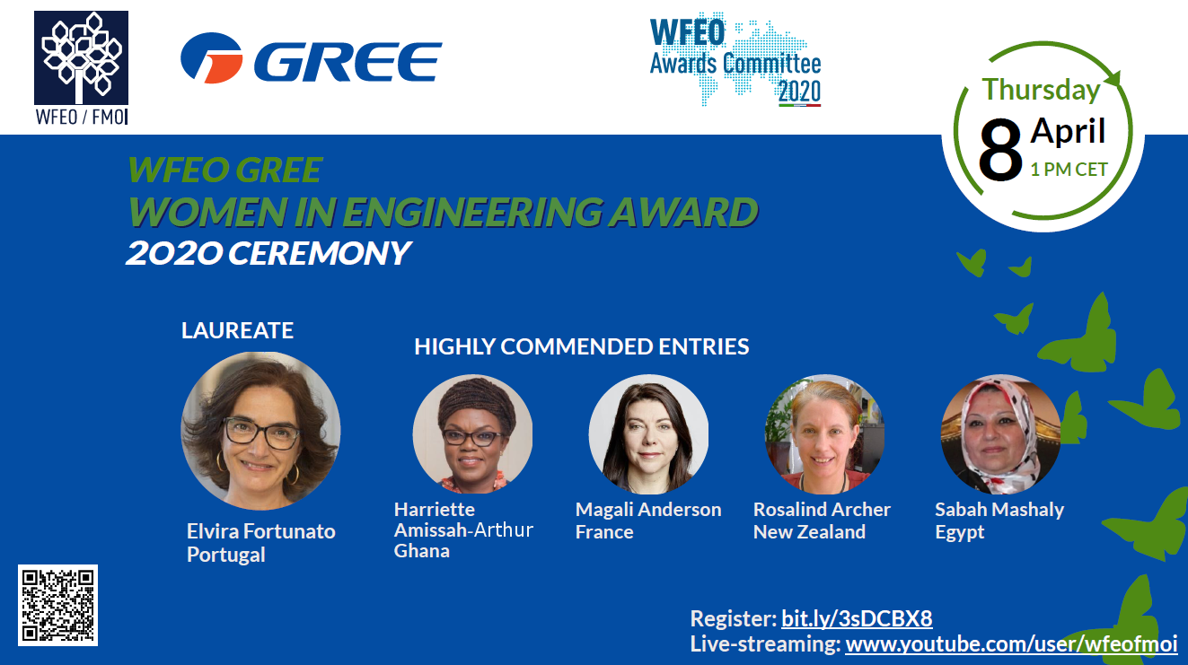 As the peak international body for engineers, the World Federation of Engineering Organizations is proud to promote diversity, inclusion, and gender equality in engineering. During its 50th Anniversary celebration at UNESCO headquarters in Paris in March 2018, WFEO was proud to announce, with its sponsor GREE Electric Appliances, a new Award to bring recognition and visibility to outstanding women engineers. The Award recognises women engineers who have shown professional excellence and impact in their work, and are role models and leaders in their field.