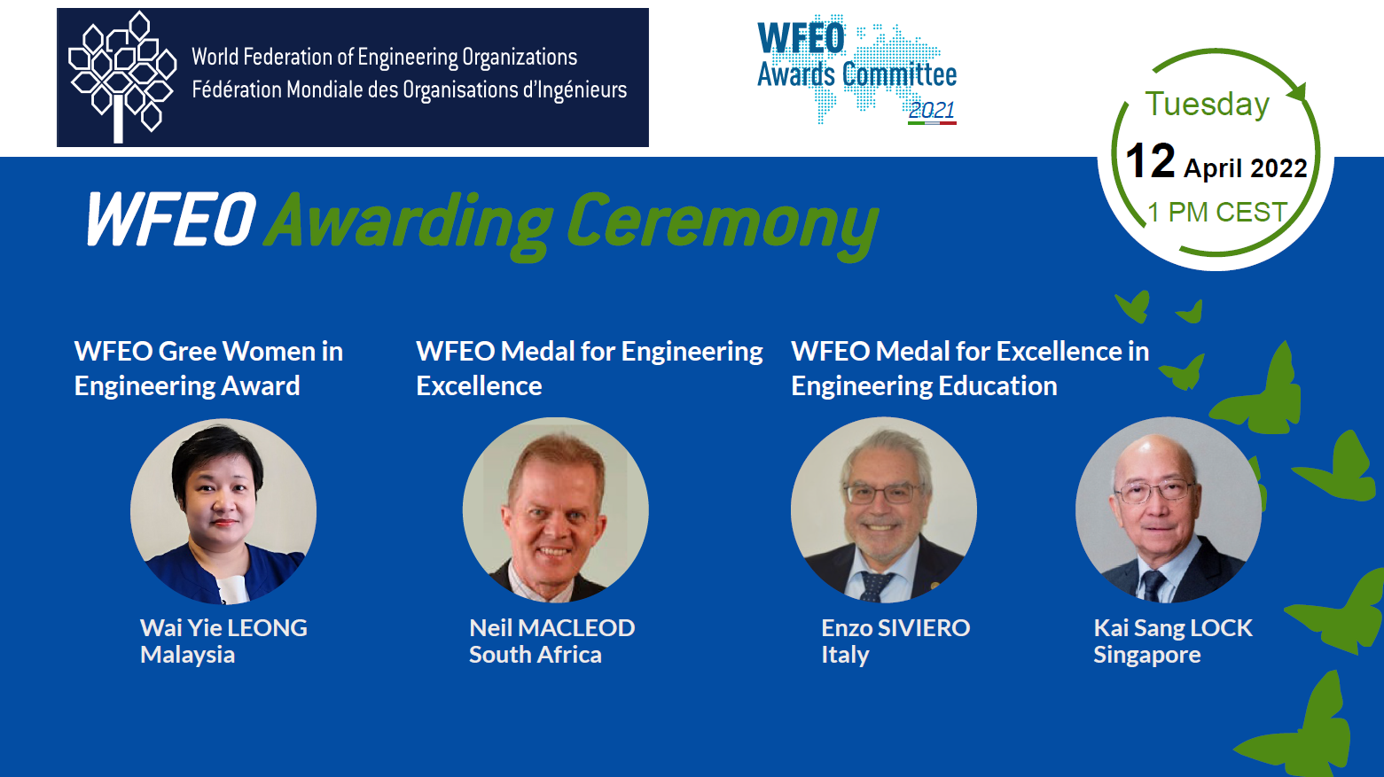 The WFEO awarding ceremony was held on Tuesday 12 April 2022.Opening: