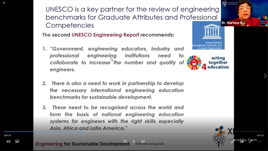 WFEO President 2017-2019 Dr. Marlene Kanga was a keynote speaker on the Graduate Attributes and Professional Competencies (GAPC) Framework.