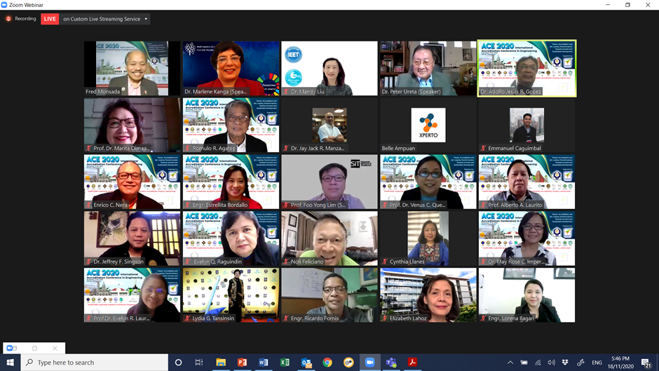 The Philippine Technological Council (PTC) and the Accreditation and Certification Board for Engineering & Technology (PTC-ACBET) organized the ACE2020: International Accreditation Conference in Engineering, as an online event between 16 and 19 November 2020.