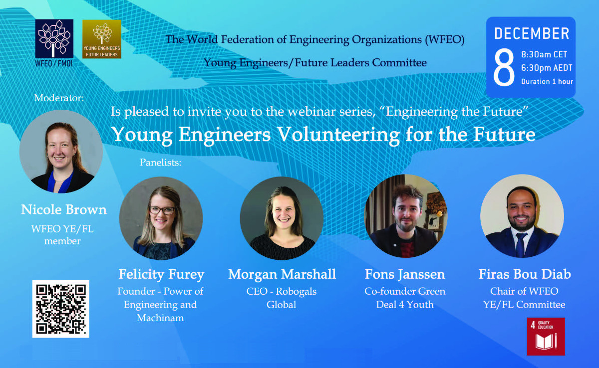The WFEO Committee on Young Engineers / Future Leaders organised the third webinar of its serie Engineering the Future #3 Volunteering for the Future on 8 December 2020.