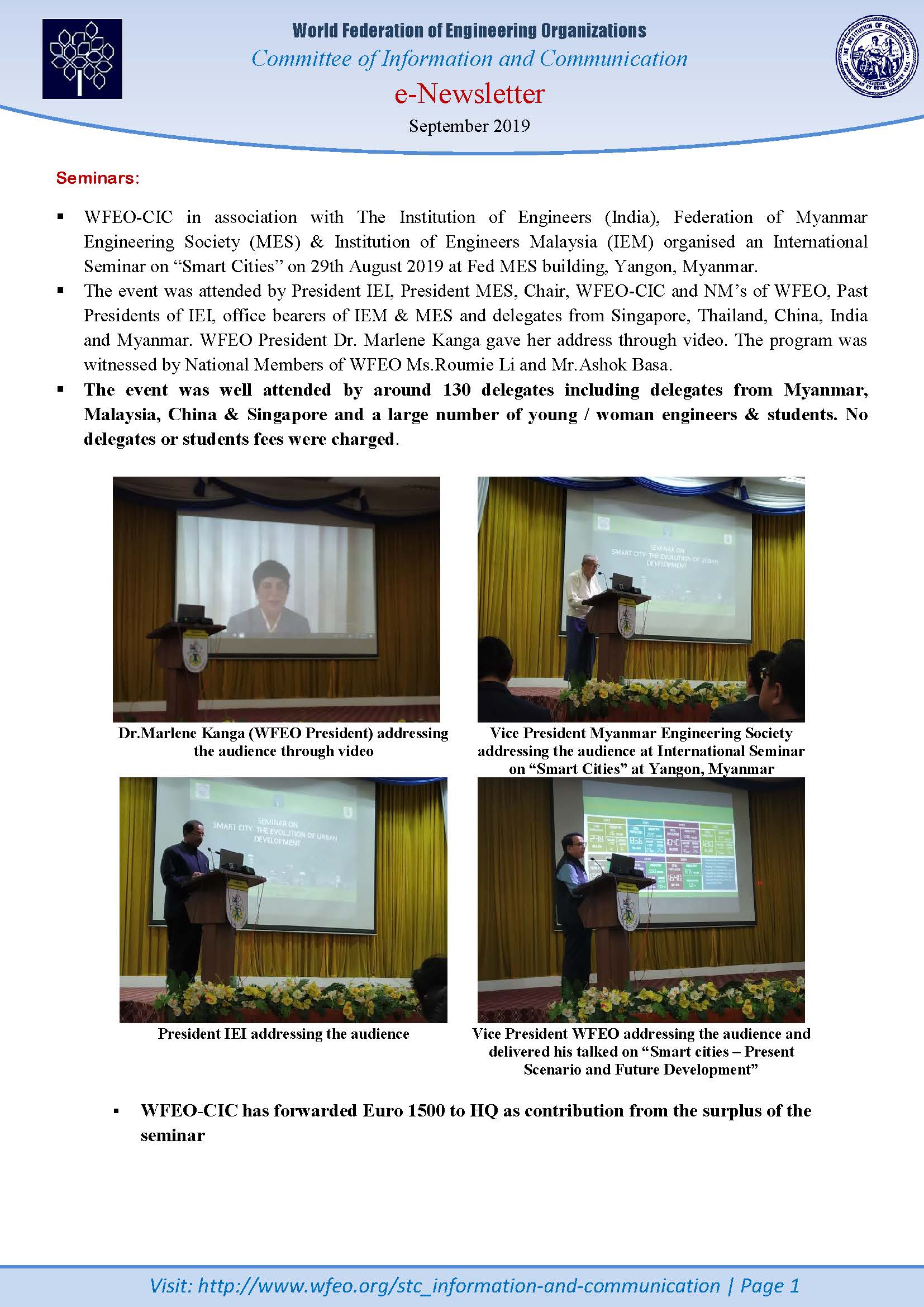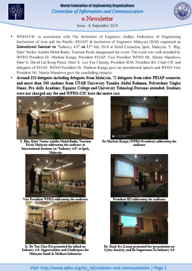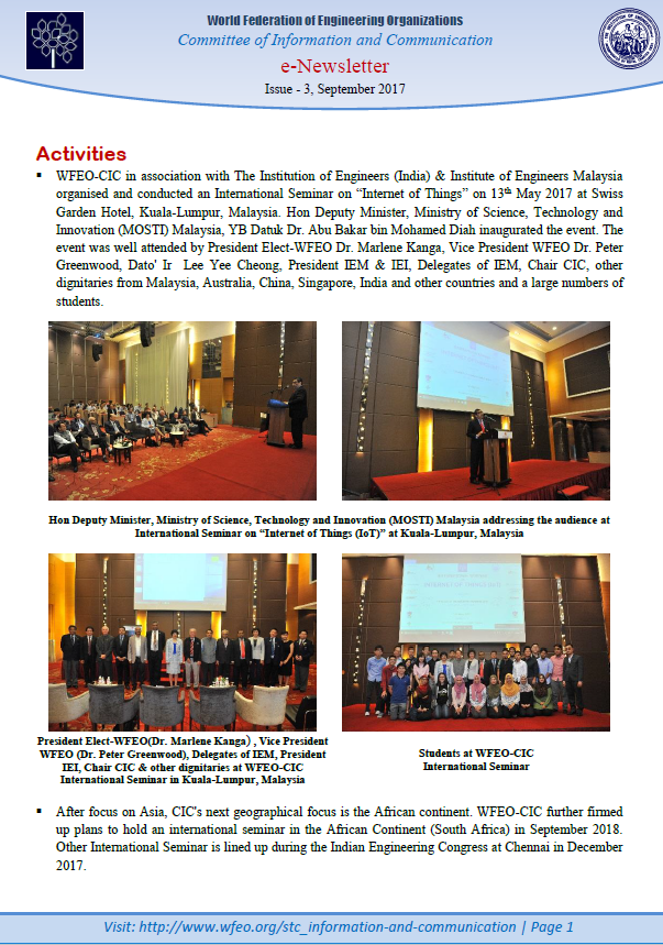 - WFEO Committee on Engineering for Innovative Technologies newsletter