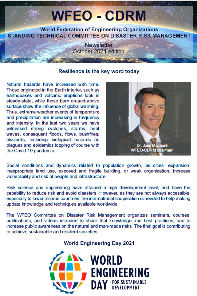 - WFEO Webinar on “The WFEO Code of Practice: Principles of Climate Change Adaptation and Resilience for Engineers”