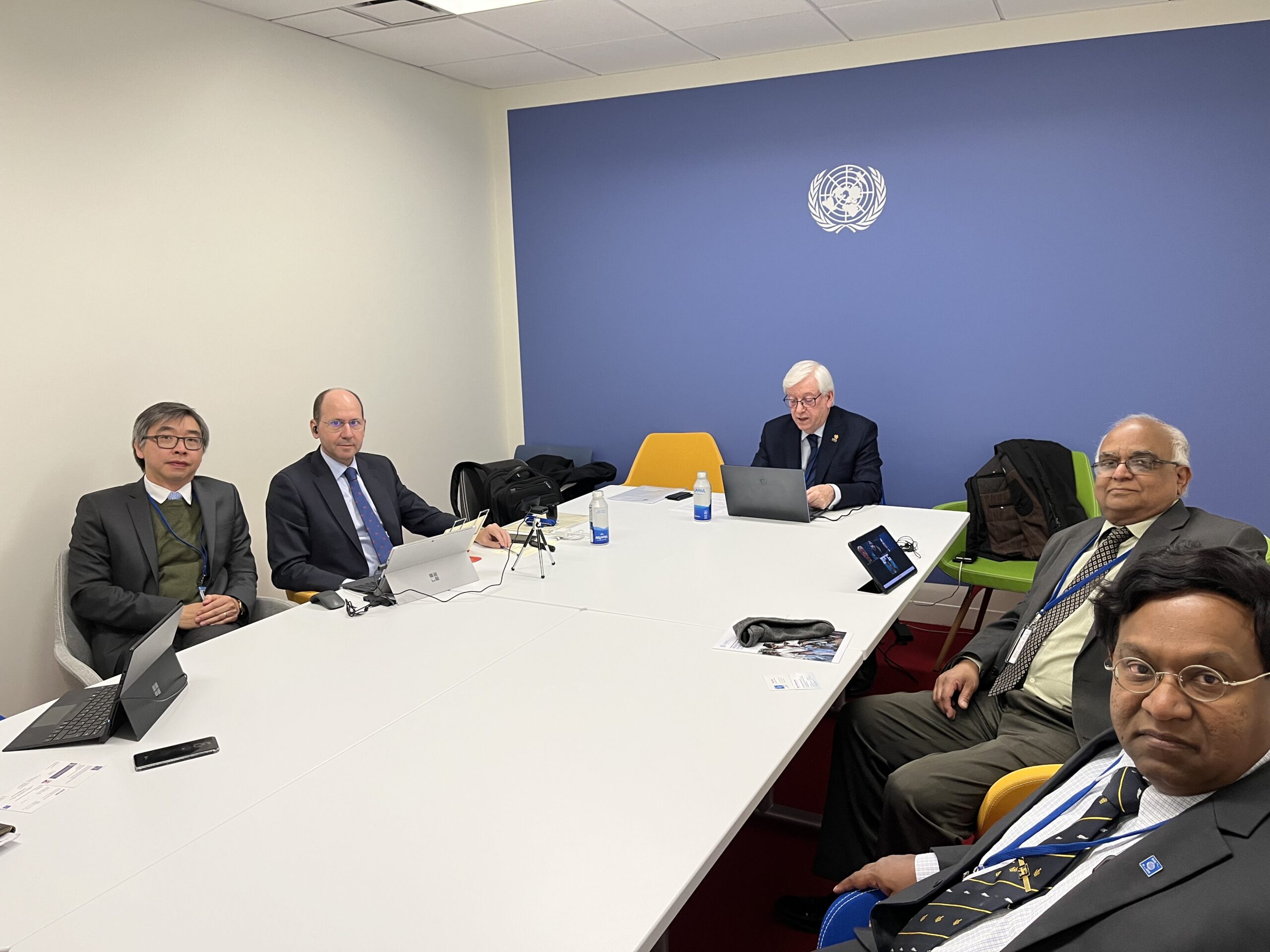 From left to right: Dr Tom Soo, Executive Director of the International Association for Hydro-Environment Engineering and Research (IAHR), Eng. Ignacio González-Castelao, Chair WFEO Committee on Water, Prof. José Vieira, WFEO President, Dr K N Gunalan, Chair WFEO UN Relations Committee and Dr Gregory De Costa, Academic Specialist at Open Polytechnic of New Zealand.