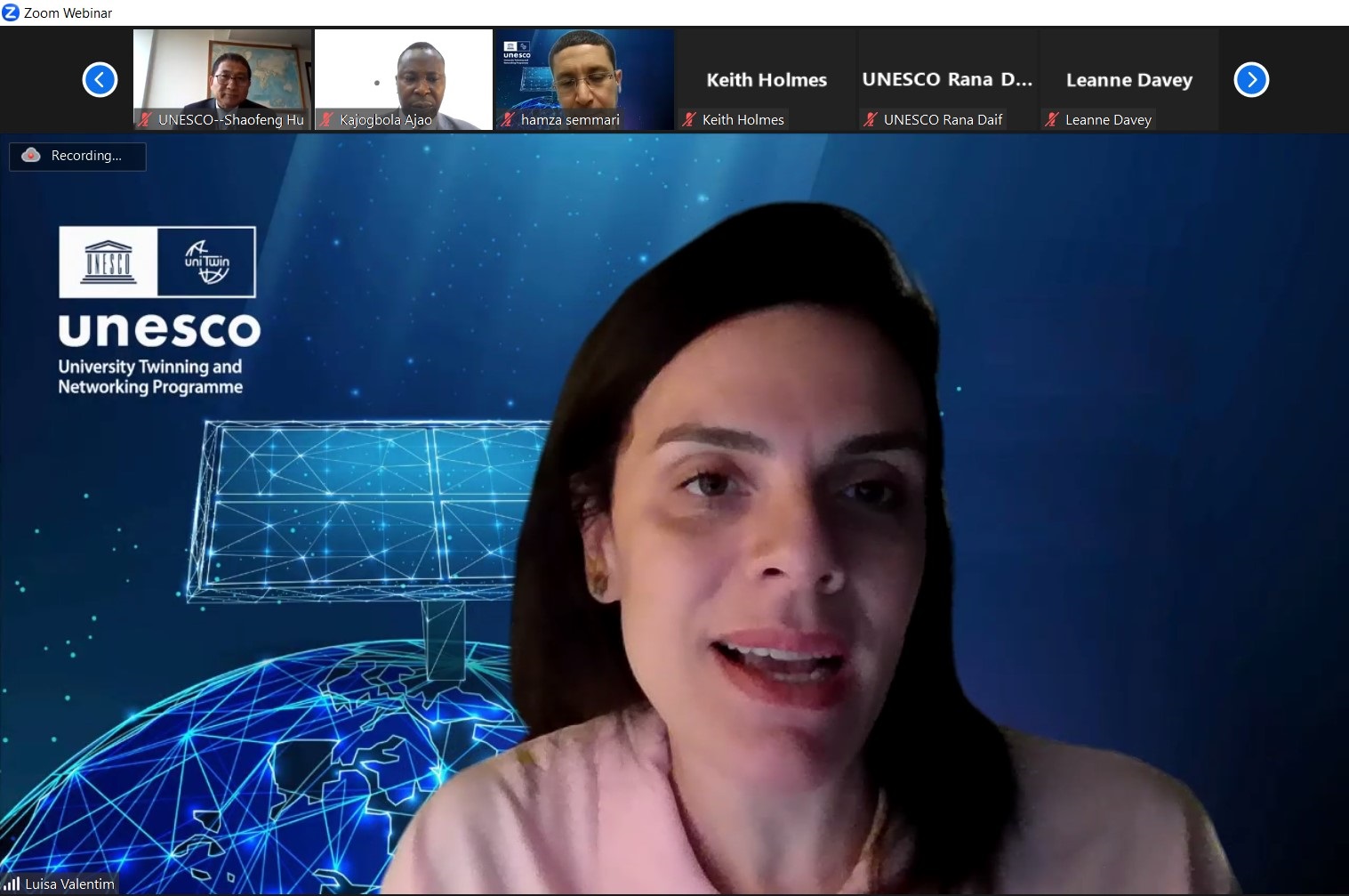 Dr Luisa Barros Valentim, LAC Council of the Engineers for Energy Transition (CEET) Regional Lead, Head of the Consulting Business Development Global – WayCarbon, delivers the keynote address at the UNESCO UNITWIN Webinar on Large-Scale Renewable Energy Deployment for Climate Change Mitigation, 10 July 2023
