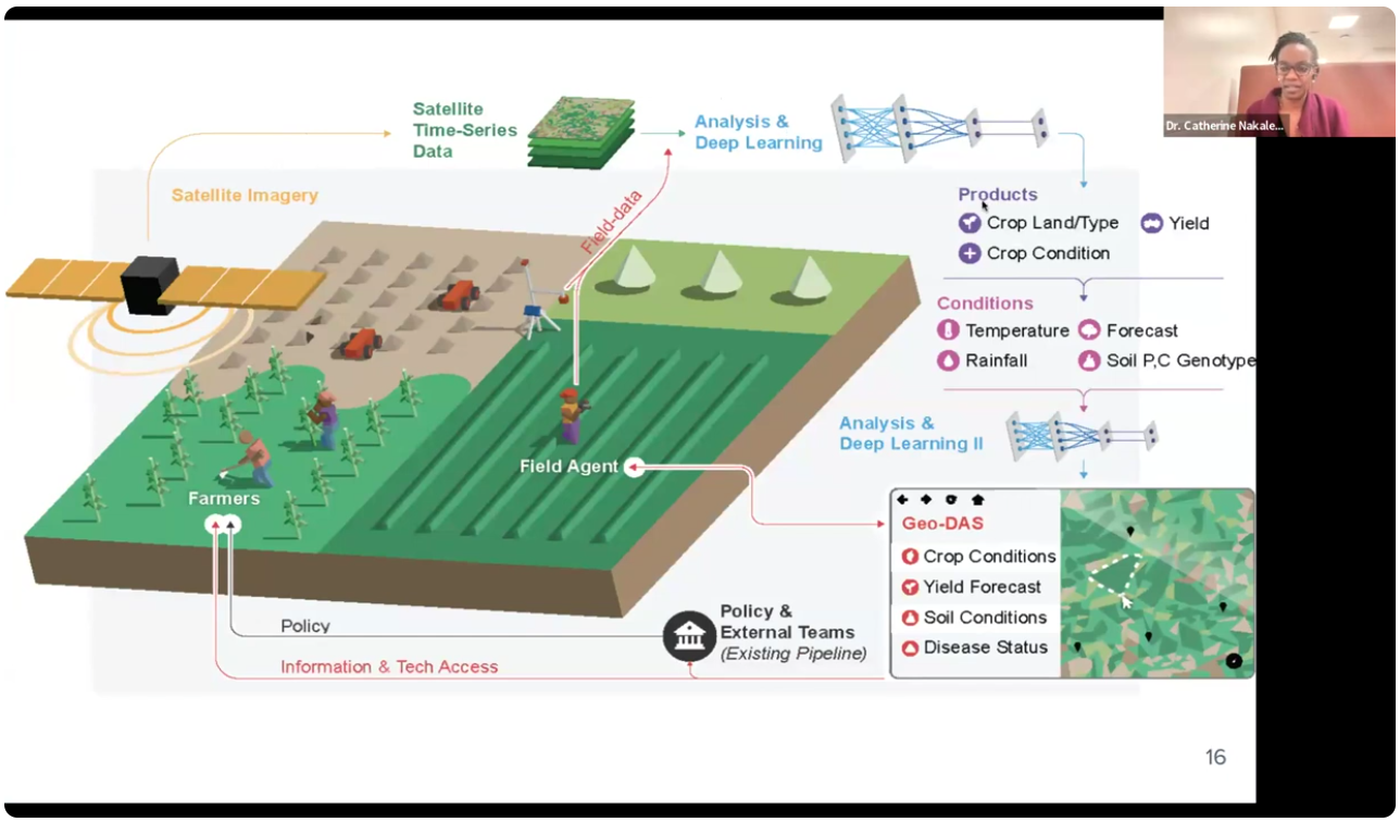 The webinar featured Dr. Catherine Nakalembe, Assistant Professor in the Department of Geographical Sciences at the University of Maryland and Director of the Africa Program under NASA Harvest. Dr. Nakalembe is a renowned expert in applying Earth observation data and machine learning to address agriculture and food security challenges, particularly in vulnerable regions.