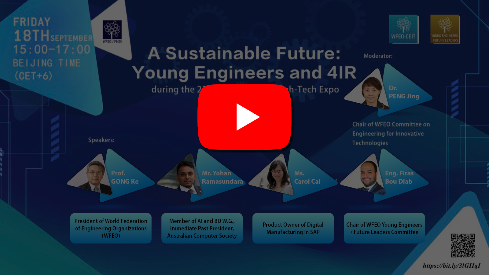 The WFEO Engineering for Innovative Technologies Committee and the Young Engineers / Future Leaders Committee organized the webinar “A Sustainable Future: Young Engineers and the Fourth Industrial Revolution (4IR)” on the 18th September 2020, during the 23rd China Beijing International High-Tech Expo (CHITEC).