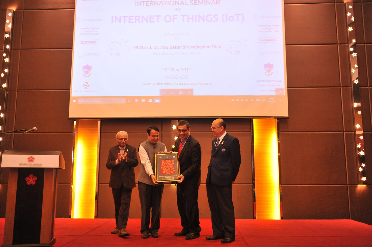 The WFEO Standing Technical Committee on Information and Communication (WFEO-CIC) hosted by the Institution of Engineers, India (IEI) partnered with the Institution of Engineers, Malaysia (IEM) to host the International Seminar on Internet of Things (IoT) on 13th May in Kuala Lumpur, Malaysia. The seminar attracted more than 200 engineering and IT experts from Malaysia and 9 other nations.