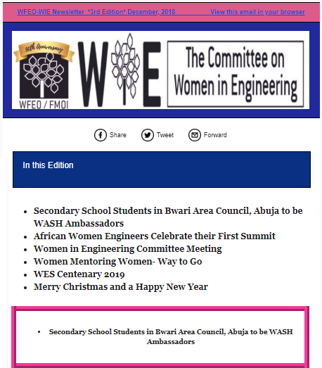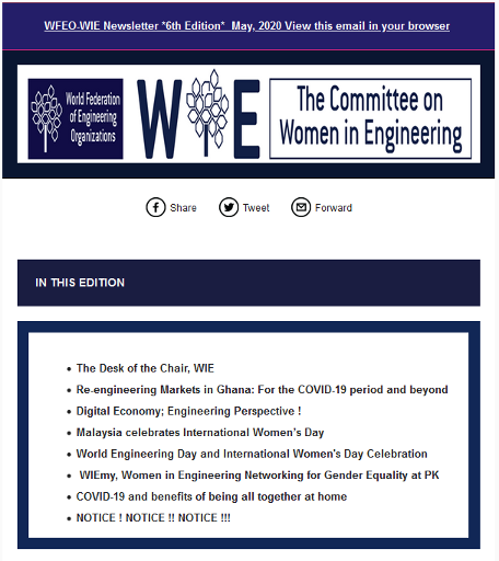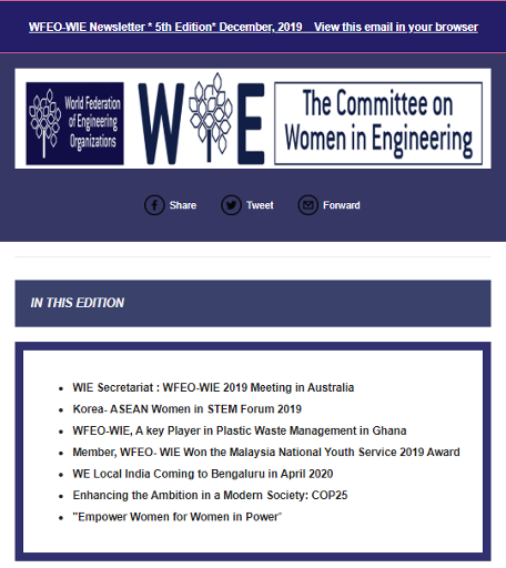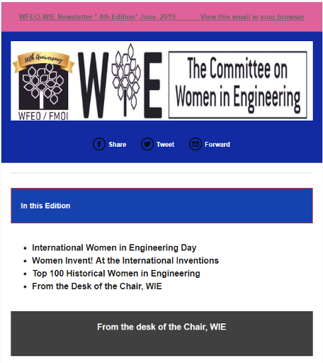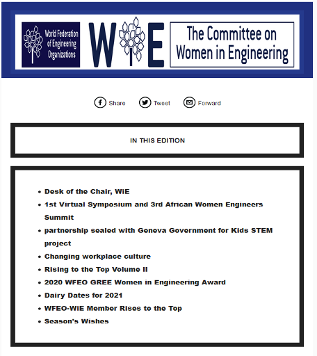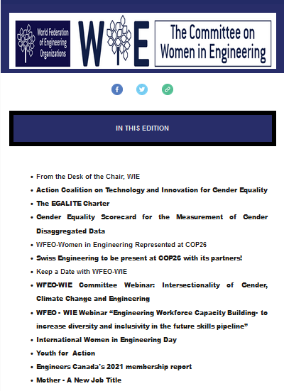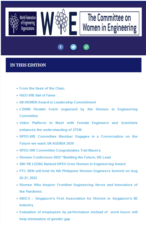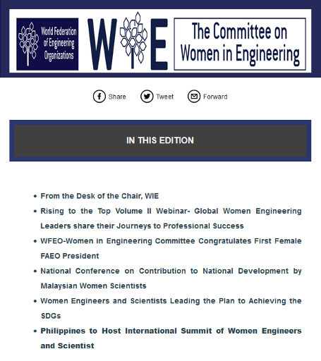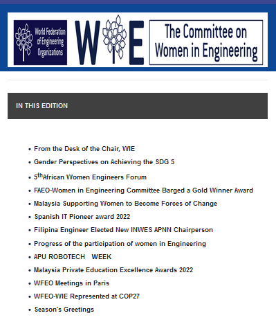- To encourage women to join in other committees of WFEO and aspire to leadership positions.