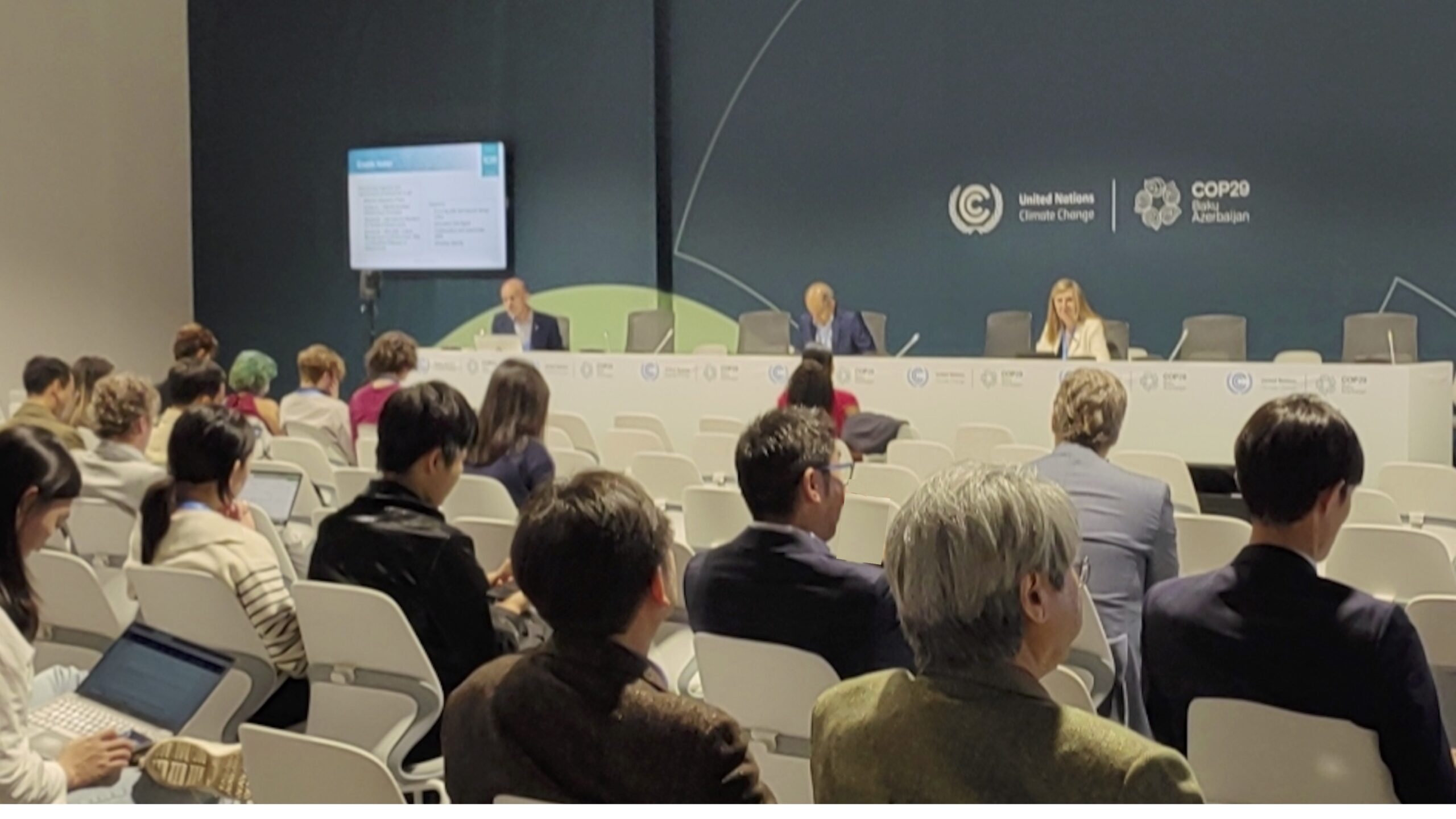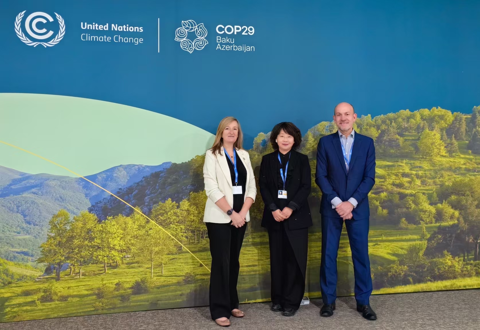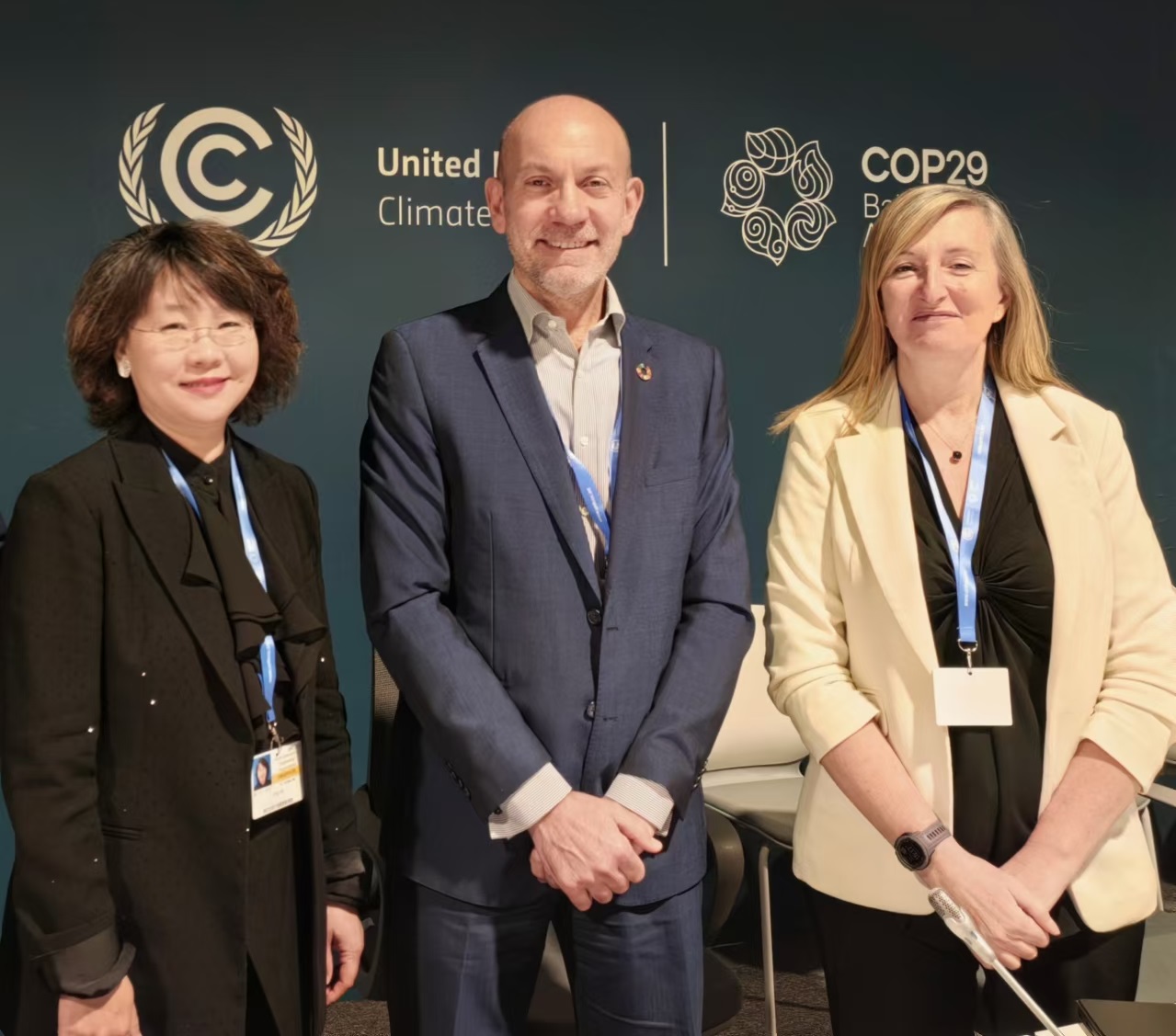 Davide Stronati, Marie-Line Vaiani and Dr. Jing He at the Blue Zone at COP29