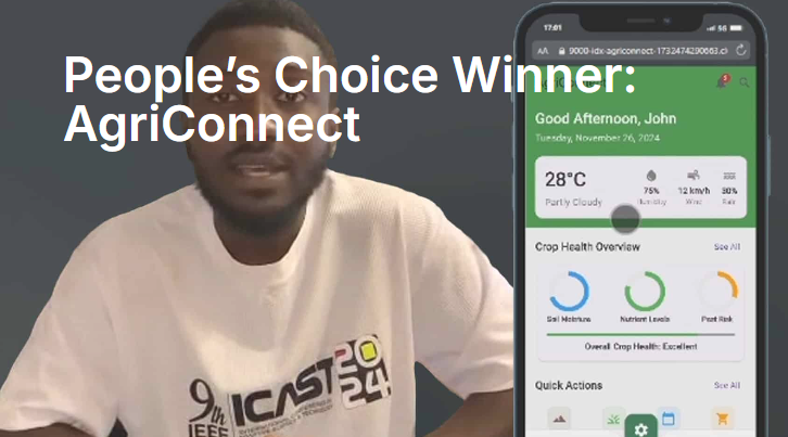 ![]() People’s Choice Winner: AgriConnect – Ghana / France AgriConnect is a digital platform designed for small-scale farmers: empowering them to boost productivity with precision farming tools, a seed exchange marketplace, and financial connections. By fostering collaboration, biodiversity, and climate resilience, it ensures sustainable food production and healthier rural economies. Beyond a mobile app, AgriConnect also offers an SMS information service for farmers in rural regions with poor internet access. |
