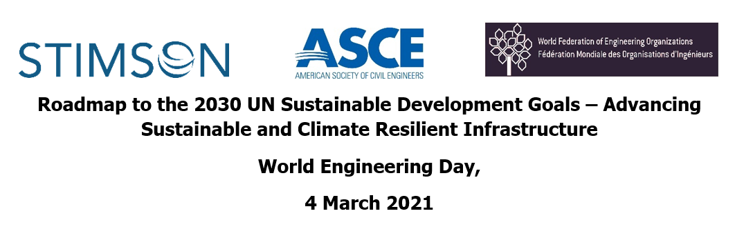 The American Society of Civil Engineers (ASCE), the Stimson Center – Alliance for a Climate Resilient Earth (ACRE) and World Federation of Engineering Organisations came together to discuss the need for a “Roadmap to the 2030 UN Sustainable Development Goals – Advancing Sustainable and Climate Resilient Infrastructure” on ...