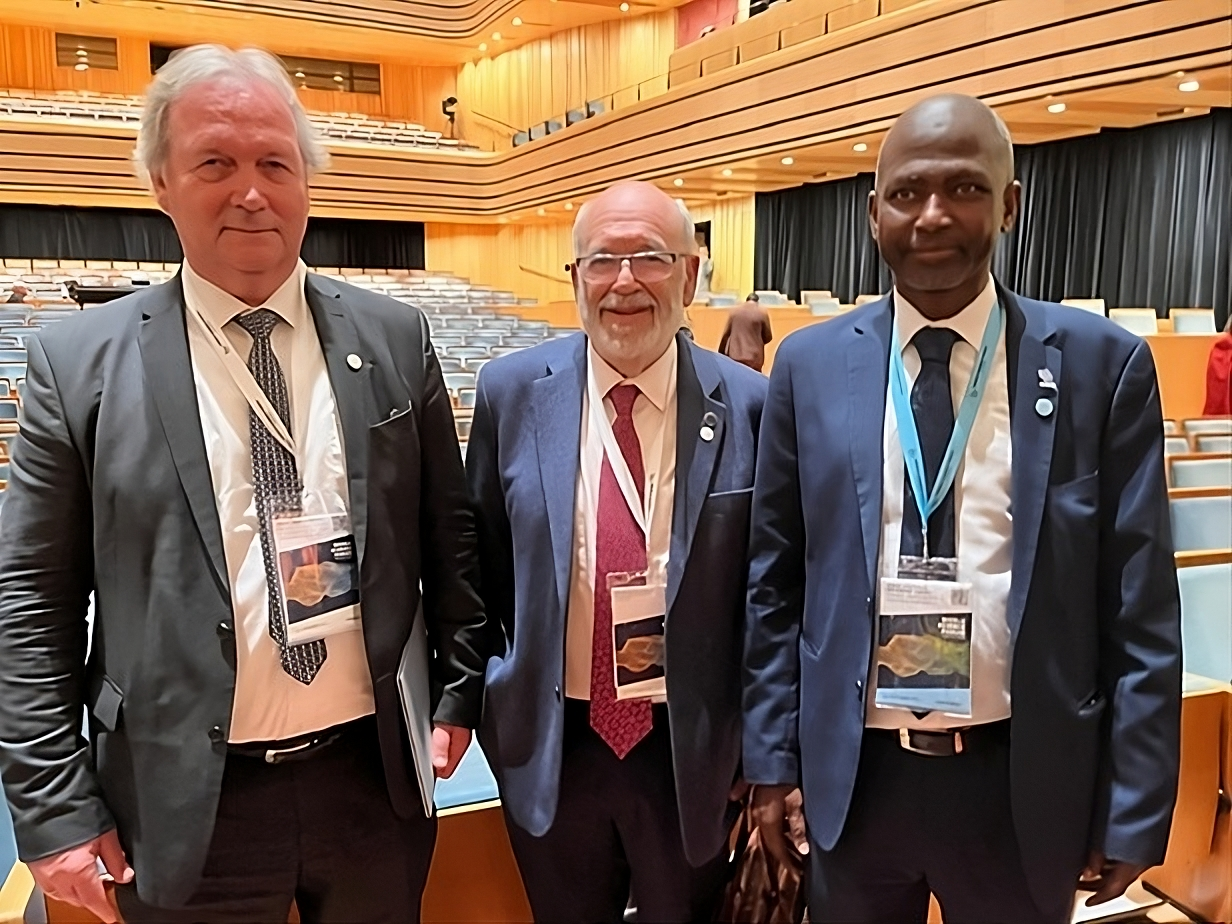 Mustafa Shehu with the President of ISC Prof. Peter Gluckman (right) and the President Of the Hungarian Academy of Sciences Prof. Tamas Freund.
