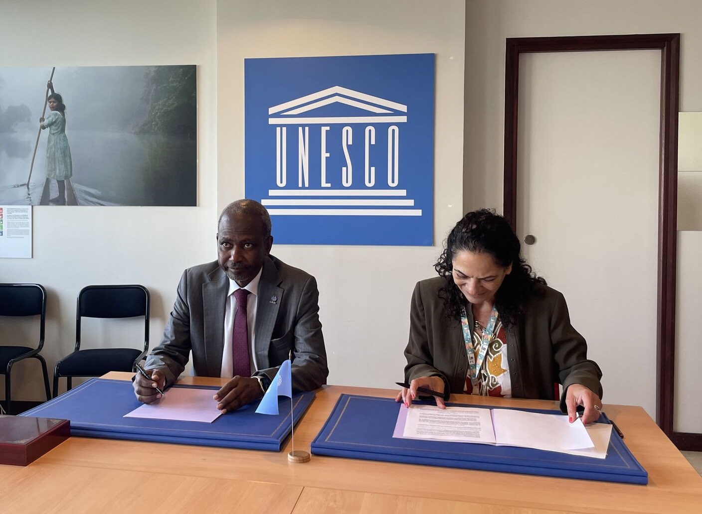 WFEO President Mustafa Shehu and UNESCO Assistant Director-General for Natural Sciences signing the UNESCO Framework Agreement.