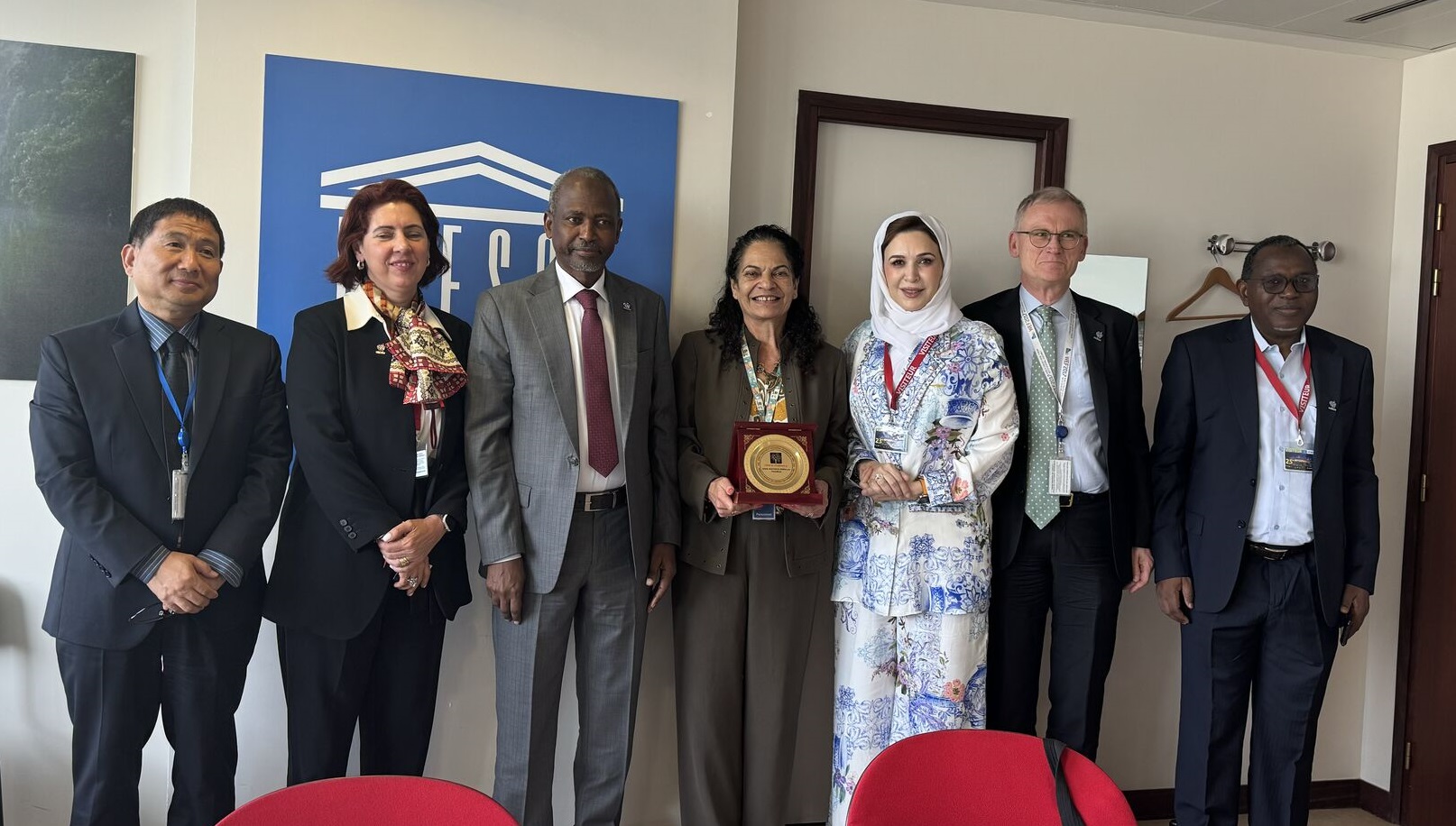 From left to right: Hu Shaofeng, Ania Lopez, Mustafa Shehu, Dr. Lidia Brito, Dr. Nahla Al-Qassimi, Jacques de Mereuil and Mukhtar Zakari