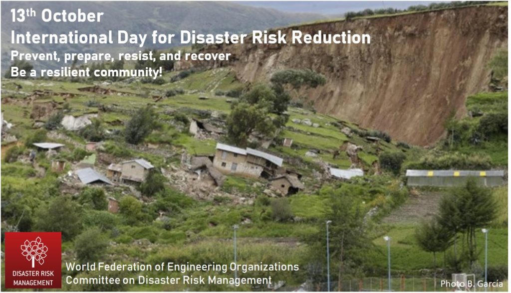Poster from the WFEO Committee on Disaster Risk Management on International Day for Disaster Risk Reduction, 13 October 2022
