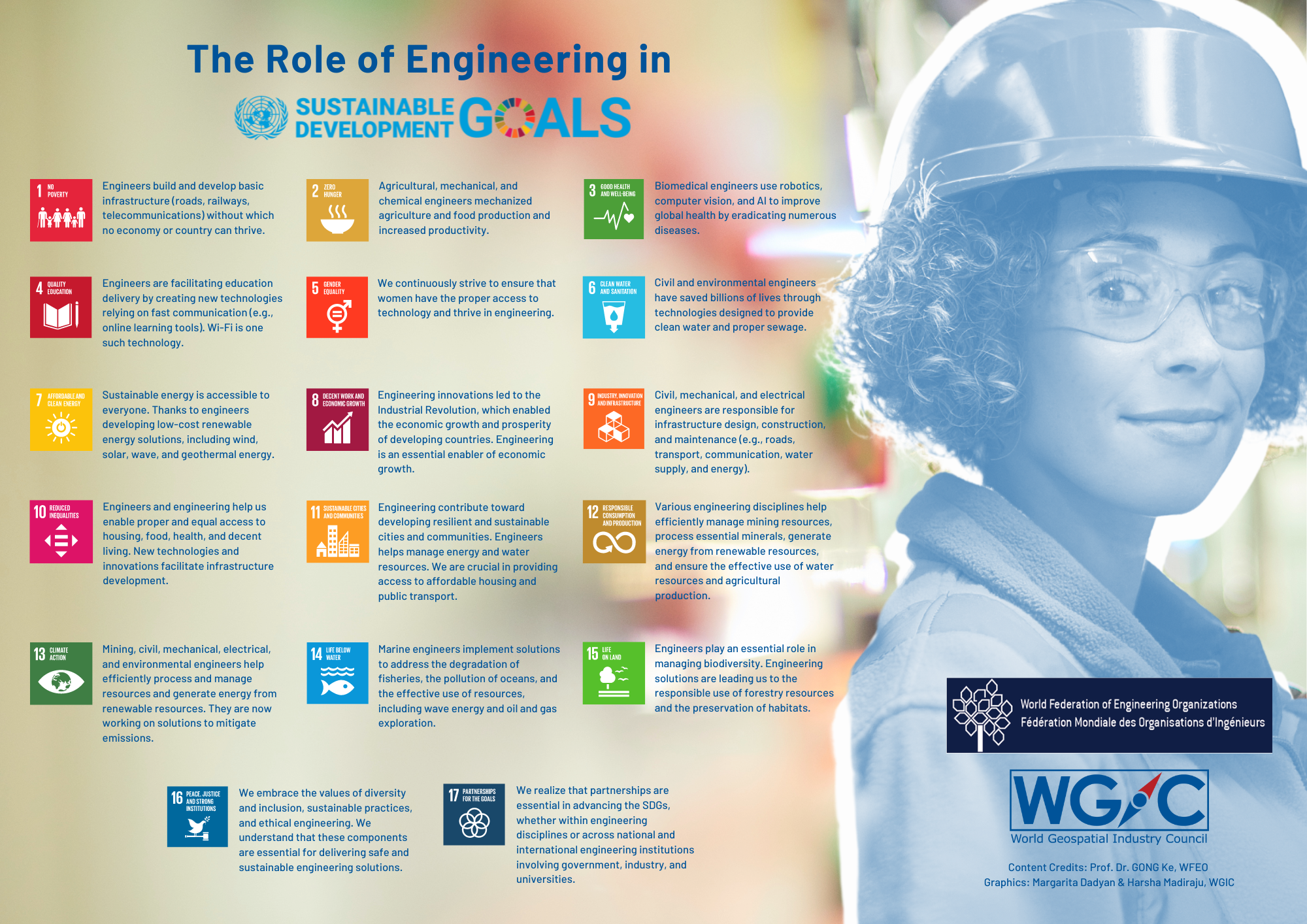 WGIC: Certainly, engineering technologies and solutions are driving us all to a better and more sustainable future. Prof GONG Ke, could you please specify the SDGs in which engineering is most used?