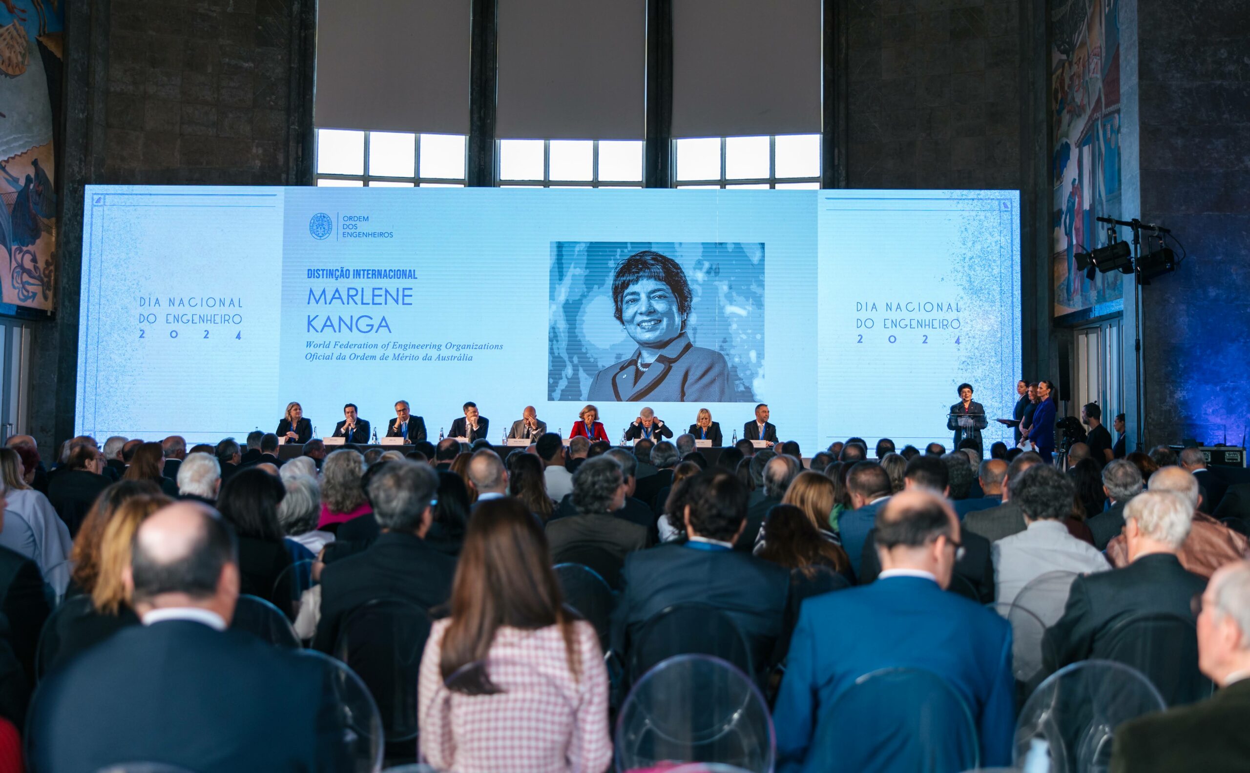 The Order of Engineers, Portugal (Ordem dos Engenheiros) presented its International Distinction Award to former WFEO President Dr Marlene Kanga AO, “for the contribution of excellence given to the development and strengthening of relations between the Portuguese Engineers Association and the global Engineering community, embodied in the WFEO” at the Solemn Session of the National Engineer’s Day, 23 November 2024, at Gare Marítima de Alcântara, in Lisbon, Portugal.