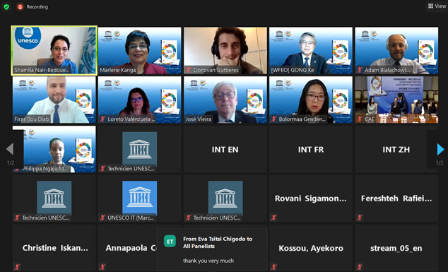 Screenshot of speakers at the UNESCO-WFEO launch of the Second UNESCO Engineering Report, 4th March 2021
