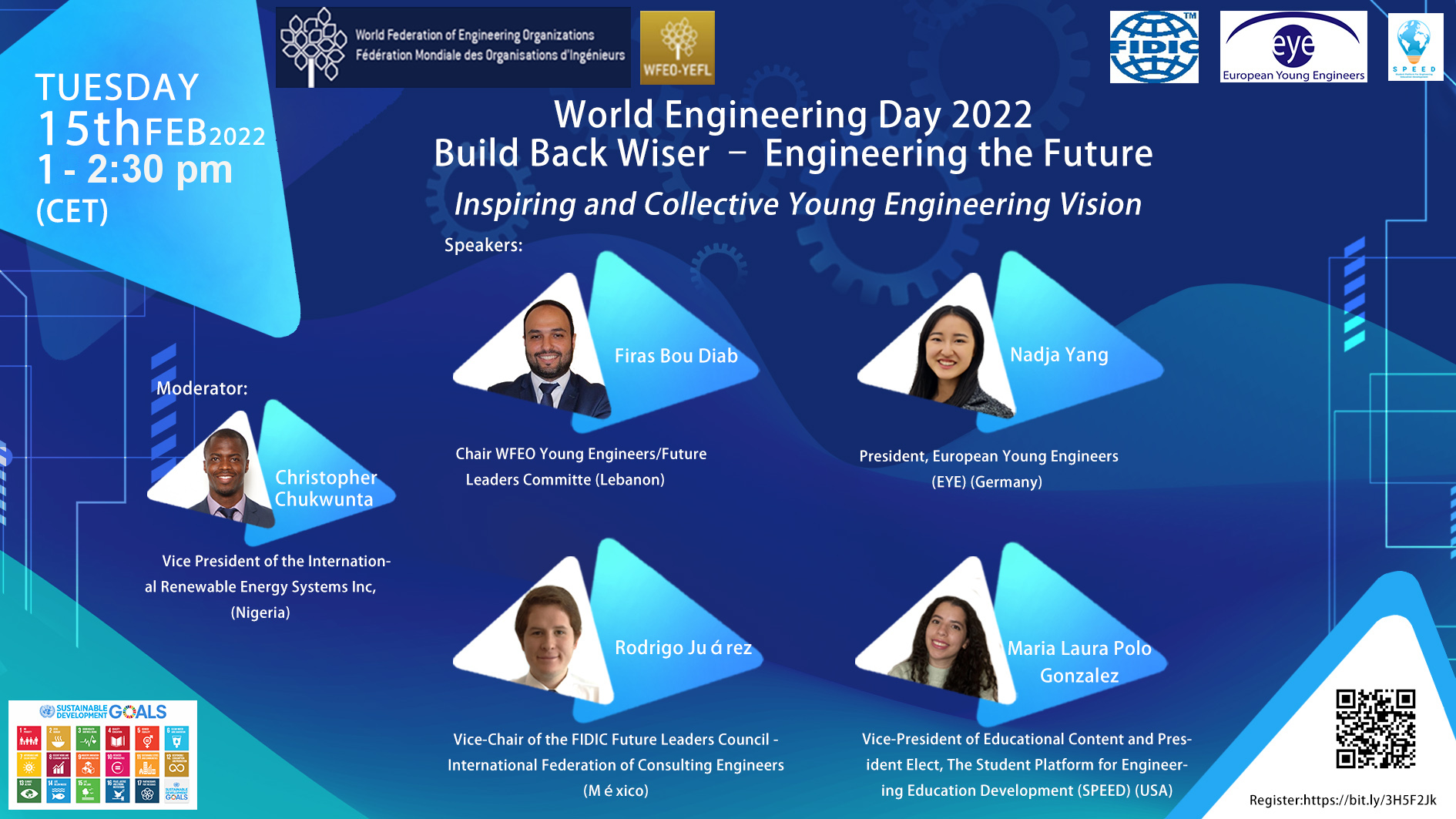 The WFEO Committee on Young Engineers / Future Leaders organized the webinar series Build Back Wiser – Engineering the Future: An Inspiring and Collective Young Engineering Vision last 15 February 2022.