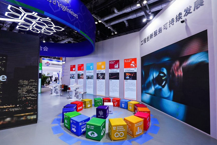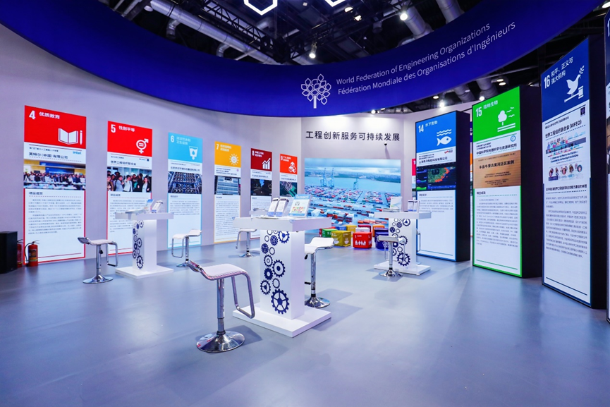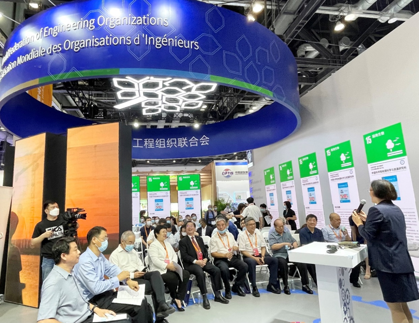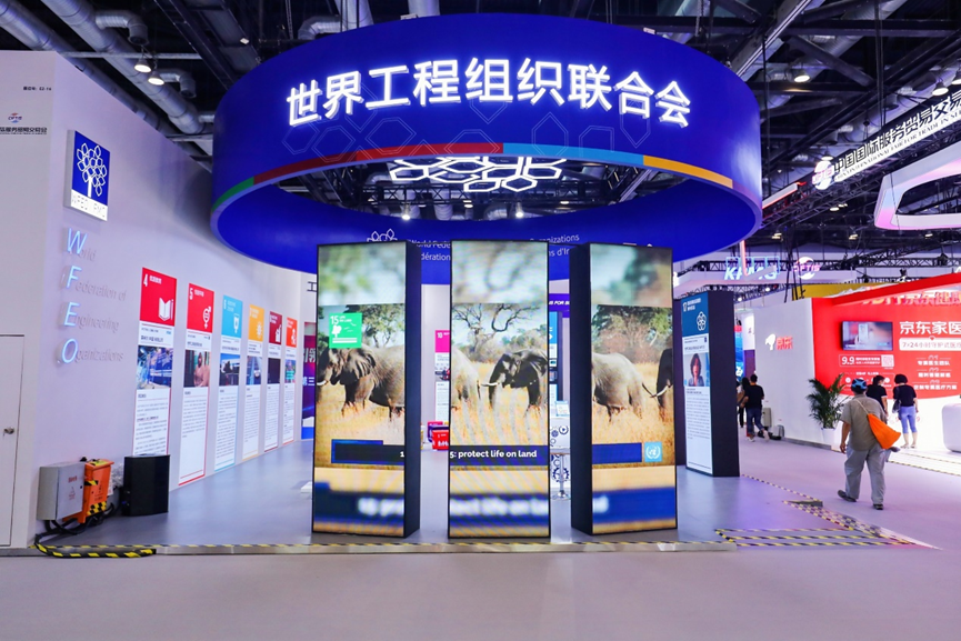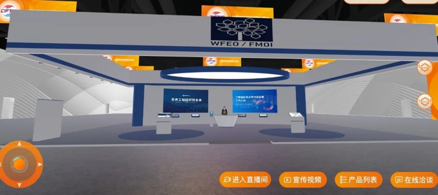The WFEO exhibition zone consists of three parts. 17 screens displaying the corresponding UN 2030 SDGs were set up in the first part of the exhibition. The best practices of engineering innovations for sustainable development from different sectors were collected at the initiative of WFEO-China and WFEO-CEIT, part of which were displayed on the screens to audiences. In the achievements exhibition and experience sharing zone, years of efforts made by WFEO to advance the SDGs with highlight on the World Engineering Day and its celebrations were introduced. The English and Chinese landmarked second UNESCO Engineering Report were exhibited in the third part of the zone together with the Engineering Innovations for Sustainable Development Best Practices. Besides, a 3D cloud exhibition was available on the CIFTIS website.