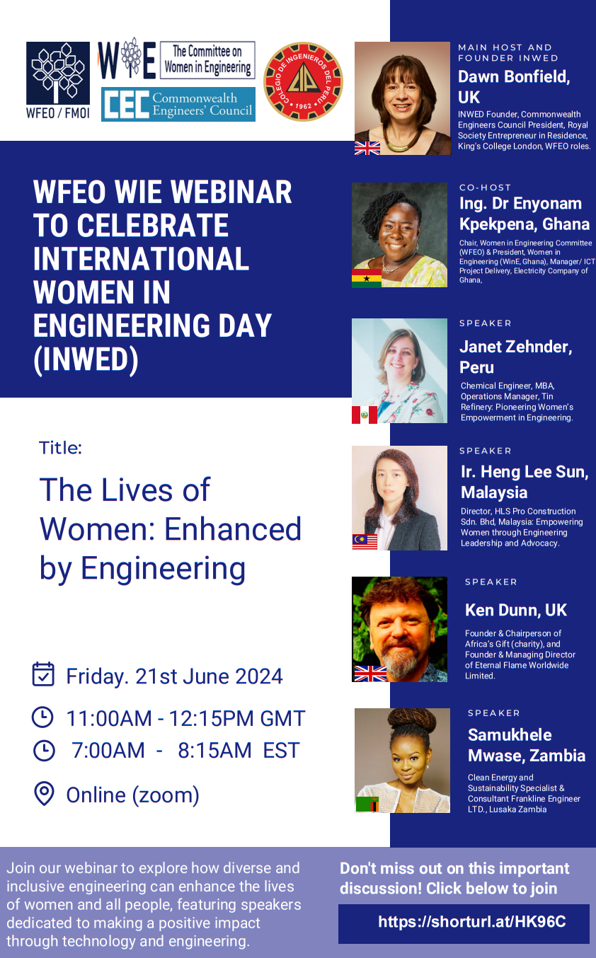 To celebrate the International Women In Engineering Day (INWED25), the WFEO Committee on Women in Engineering (WFEO-WIE) organized the webinar “11th INWED webinar – Harmonizing data collection on Women Engineers across Countries: A State-of-Art” on 23 June 2025.